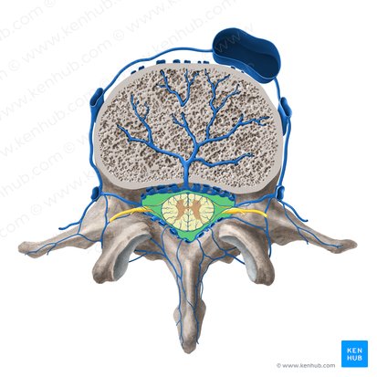 Die Venen der Wirbelsäule bilden ein venöses Netzwerk, welches sich in die Plexus venosus vertebralis internus und externus entleert. Von dort fließt das venöse Blut schließlich durch die vertebrale und segmentalen Venen ab. Die Haut und Muskulatur des Rückens wird über die Vena vertebralis, das Azygos-Venensystem und die Vena cava inferior drainiert.