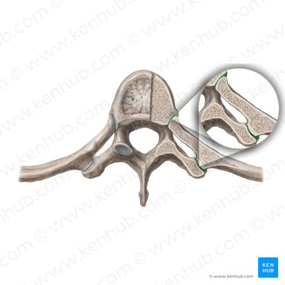 - Wirbelbogengelenke (Articulationes zygapophysiales): die Processus articulares superiores und inferiores stellen dabei die Gelenkflächen dar.