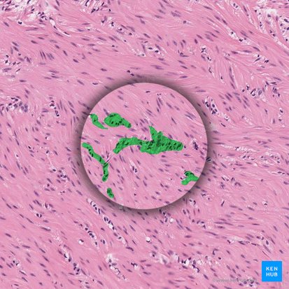 - Muskelschicht - Glatte Muskulatur in Blutgefäßen, Herzmuskulatur (Myokard) im Herzen.