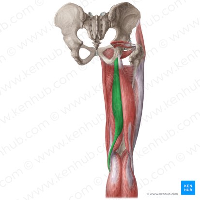 | Funktion | Flexion im Kniegelenk, Extension im Hüftgelenk, Stabilisierung beider Gelenke, Rotation im Kniegelenk |