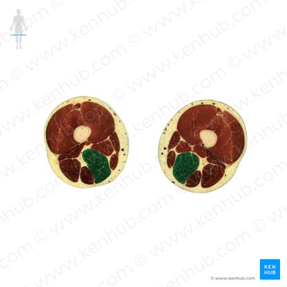 In seinem Verlauf bildet er die mediale Begrenzung der Kniekehle und setzt über den Pes anserinus superficialis oben an der medialen Tibiafläche an.