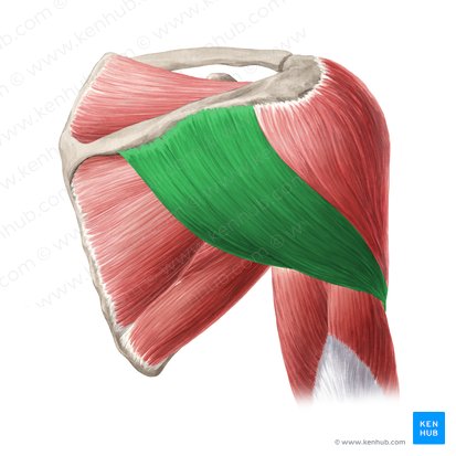 Der Musculus deltoideus (Deltamuskel) ist ein großer, kräftiger Muskel, der das Schultergelenk bedeckt. Er prägt somit auch maßgeblich das Oberflächenrelief der Schulter und kann in insgesamt drei Anteile gegliedert werden:
