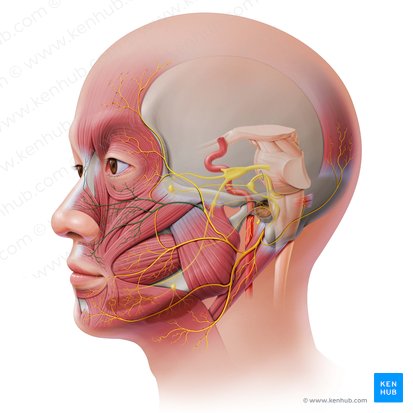 Er befindet sich in der oberflächlichen Schicht der Gesichtsmuskulatur.