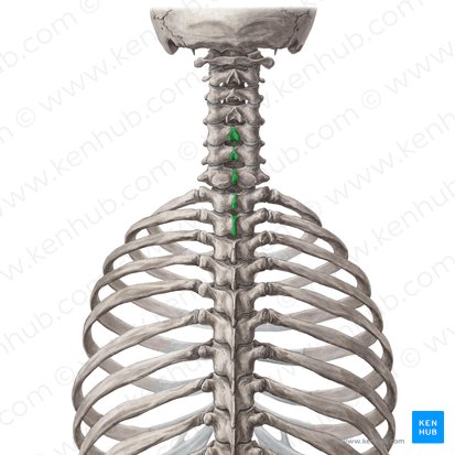 - M. semispinalis cervicis entspringen von den Querfortsätzen des 2.-7. Brustwirbels und setzen an den Processi spinosi des 2.-7. Halswirbels an.