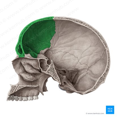 Das Os frontale (Stirnbein) gehört zu den Schädelknochen, die das Gehirn umschließen (Neurocranium).