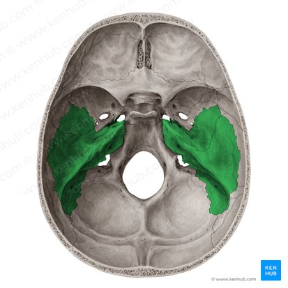 Die hintere Schädelgrube besteht aus Teilen des Os occipitale und Os temporale. Im Bereich der hinteren Schädelgrube finden sich ebenfalls knöcherne Orientierungspunkte: