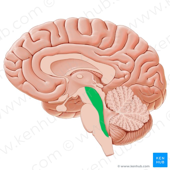 Die Substantia nigra ist ein paarig angelegtes Kerngebiet im Mesencephalon.