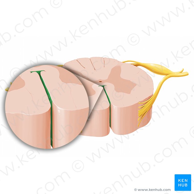 Anterolateral → Fissura mediana anterior, Sulcus anterolateralis Posterolateral → Sulcus medianus posterior, Sulcus intermedius posterior (zervikale und obere thorakale Ebene), Sulcus posterolateralis |