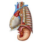 Im oberen Mediastinum sind wichtige Organe lokalisiert, wie der Thymus, die Trachea und der Ösophagus. Die wichtigsten Strukturen in diesem Raum sind die Vena cava superior, die Vena azygos, der Aortenbogen, die Arteria und Vena pericardiacoprenica, der Nervus vagus und der Nervus phrenicus.
