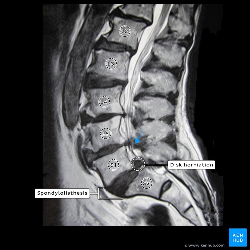 | Spondylolisthesis | It is a condition involving the anterior shifting of a vertebral body in relation to the vertebra located immediately inferior to it. It can be degenerative or spondylolytic. |