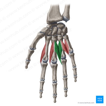 The lumbrical muscles, which get their name due to their worm-like appearance (lumbricidae - Latin = earthworm), are four short intrinsic muscles of the hand located between the metacarpal bones, deep to the palmar fascia. Along with the dorsal interossei and the palmar interossei, the lumbrical muscles belong to the short muscles of the hand.