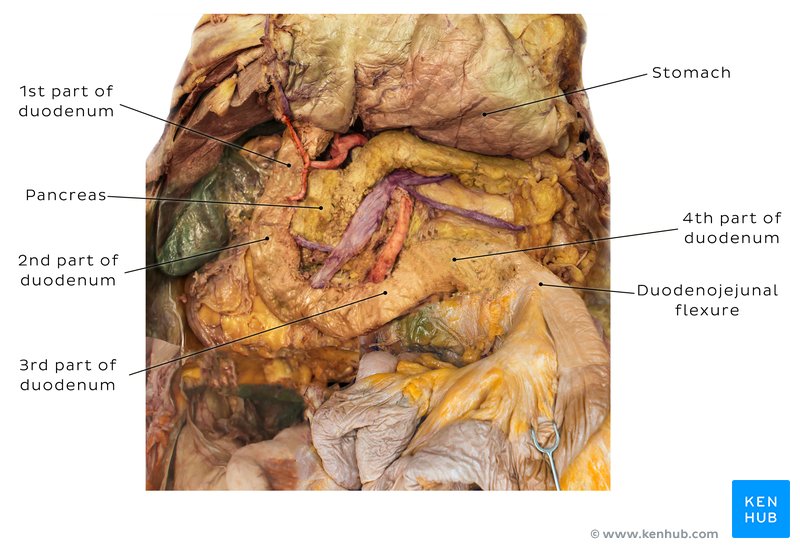 | Location | 25-30 cm long, C-shaped around the head of the pancreas, L1-L3 level |