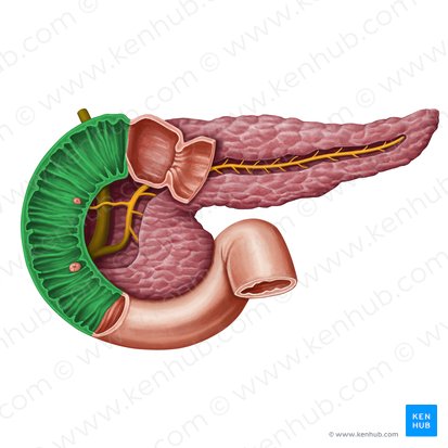 | Blood supply | Superior (anterior, posterior) and inferior pancreaticoduodenal arteries |