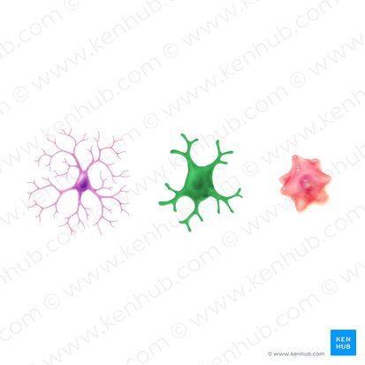 Despite belonging to glia, microglia are notably smaller and distinct from other cell types in the macroglia category, including astrocytes, oligodendrocytes, and ependymal cells. Their population is the smallest among all other cells in the CNS.