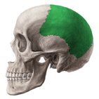 Neurocranium: Frontal bone, ethmoid bone, sphenoid bone, parietal bone, temporal bone, occipital bone Viscerocranium: Nasal bone, inferior nasal concha, lacrimal bone, maxilla, palatine bone, vomer Sutures: Coronal suture, lambdoid suture, squamous suture, occipitomastoid suture, sphenofrontal suture |