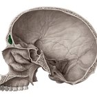 And we can clearly see here the first one, highlighted in green. This is known as the squamous part of the temporal bone. And the squamous part of this bone makes up the lateral wall of the middle cranial fossa and also houses the middle meningeal artery.