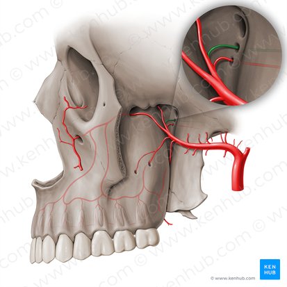 - Rama faríngea de la arteria maxilar: la arteria maxilar es una de las dos ramas terminales de la arteria carótida externa. La rama faríngea surge de la tercera porción de esta arteria.