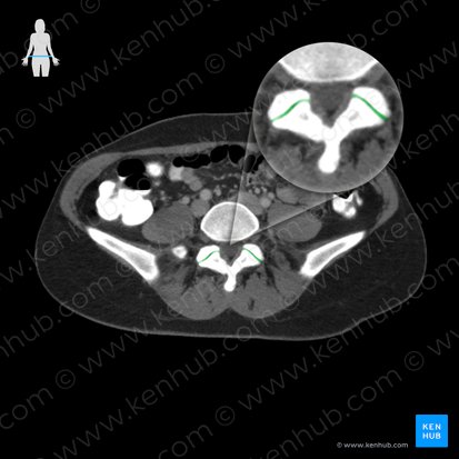 Las articulaciones cigapofisarias se extienden entre el axis (C2) y la primera vértebra sacra (S1). Cada articulación está rodeada por una cápsula fibrosa delgada y laxa que se adhiere a los bordes de las carillas articulares, que están cubiertas de cartílago hialino. Las articulaciones cigapofisarias son estabilizadas por ligamentos accesorios de la columna vertebral, que conectan firmemente las láminas adyacentes, los procesos transversos y los procesos espinosos.