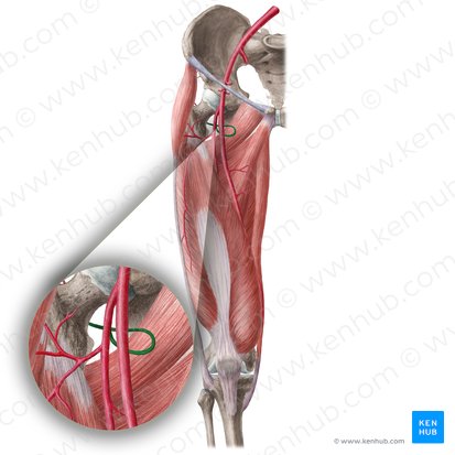| Acción | Arteria circunfleja femoral medial, arteria obturatriz |