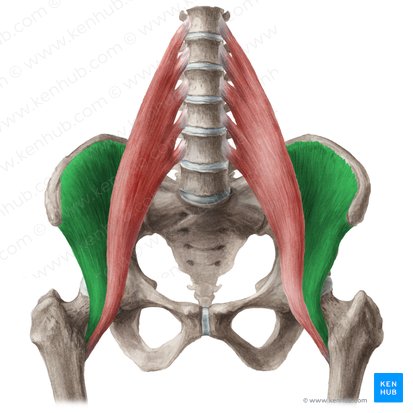 El grupo muscular iliopsoas se llama de esta forma por los músculos que lo componen: el músculo ilíaco, el psoas mayor y el psoas menor. Ellos se localizan en el compartimiento del iliopsoas en el abdomen posterior junto al plexo lumbar. Este grupo muscular se origina en la pared del abdomen posterior y se inserta en el trocánter menor del fémur.