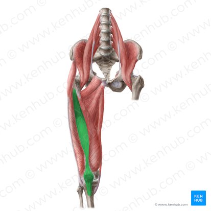 | Función | Articulación coxofemoral: extensión y rotación externa del muslo Articulación de la rodilla: flexión y rotación externa de la pierna Estabilización de la pelvis |