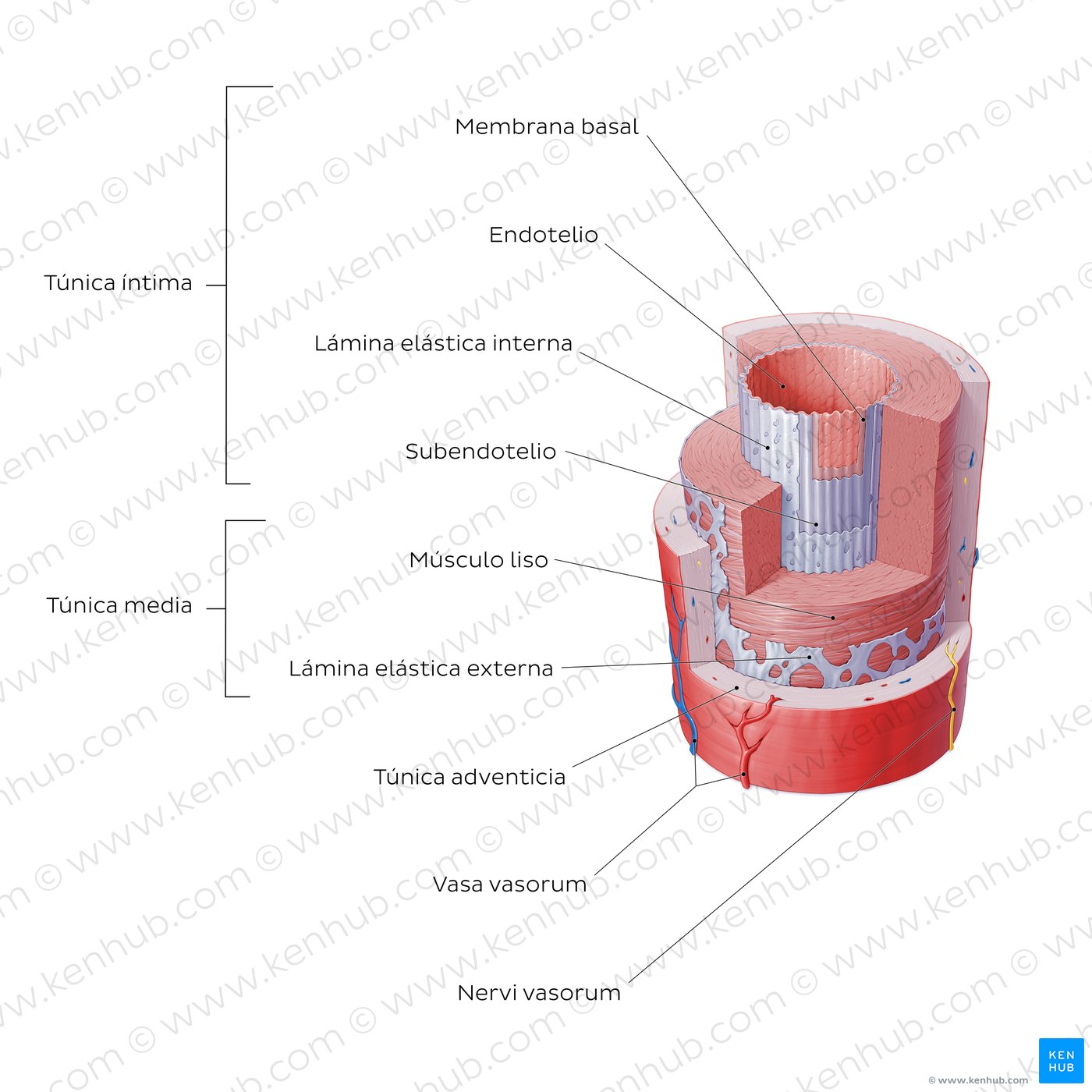 | Músculo liso | Tejido muscular no estriado involuntario, comprende las túnicas musculares de los órganos internos |