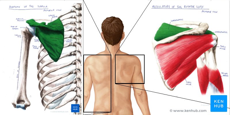 Para hacer el póster, el material relevante en el atlas enciclopédico de Kenhub ha sido impreso y etiquetado. Estructuras importantes para recordar son la columna, las fosas de la porción posterior de la escápula (omóplato) que se encuentran divididas verticalmente y los músculos y tendones suprayacentes. La amplia gama de cortes disponibles en Kenhub le da la capacidad de profundidad a tu póster y estas impresiones se pueden engrapar unas sobre otras para dar un efecto "realista" cuando se ven. Siempre ayuda poner título al corte (con o sin referencia especial a la estructura resaltada) y nombrar la orientación en la que está enmarcada. Si no estás familiarizado con la terminología anatómica, hay una breve descripción disponible aquí. También se proporcionan cortes del cuerpo a escala completa en las que puede delinear la(s) estructura(s) de interés para tu revisión.