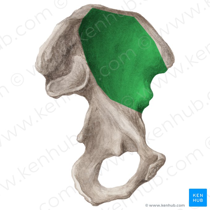 | Ilion | Cuerpo, ala, cara glútea, cara sacropélvica |