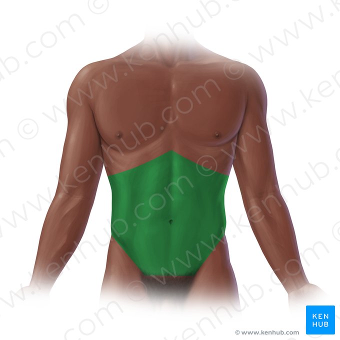El abdomen es la porción inferior del tronco anterior, ubicado justo debajo del tórax. El abdomen está dividido en varias regiones que permiten una comunicación precisa sobre la localización de las estructuras anatómicas en su interior, así como de cualquier patología.