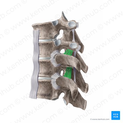 La partie suivante est connue sous le nom de ligament costotransversaire latéral, qui se situe en arrière et relie le processus transverse de la vertèbre à la côte, distalement par rapport au tubercule costal. La dernière partie est le ligament costotransversaire supérieur qui est un ligament à deux couches dont les fibres sont perpendiculairement orientées. Celui-ci passe du bord supérieur du col de la côte au processus transverse de la vertèbre sus-jacente.