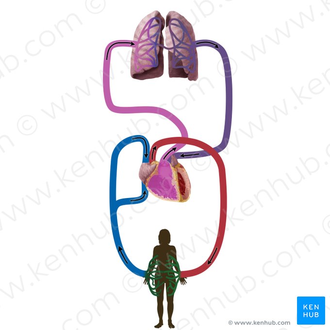 Le système cardiovasculaire est composé du cœur, des vaisseaux sanguins et du sang qui circule à l’intérieur. La principale fonction du cœur est de pomper le sang à travers le système vasculaire (les vaisseaux sanguins). Le système vasculaire est divisé en veines et artères avec le premier qui rapporte le sang vers le cœur et le second qui envoie le sang à partir du cœur vers les tissus périphériques. Le sang transporte des gaz, des nutriments, des électrolytes, des déchets et des hormones permettant de maintenir l’homéostasie du corps. Le système vasculaire est également divisé en deux circuits :
