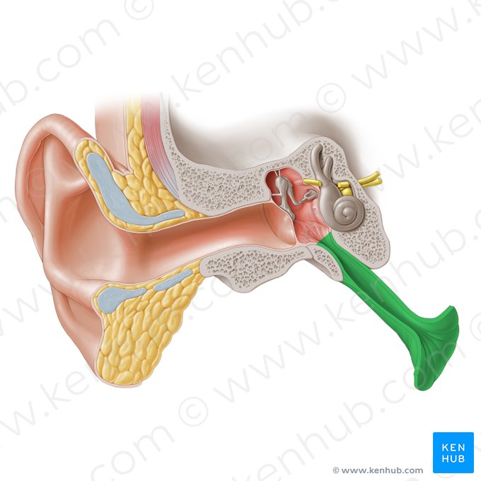 O músculo se origina da cartilagem da tuba auditiva e eleva os aspectos superior e lateral da faringe.