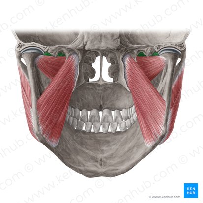 Desordens da articulação temporomandibular, como ruídos ou dor durante a mastigação são muito frequentemente causados por tensão nos músculos da mastigação. Geralmente tanto o masseter quanto os músculos temporais são afetados, enquanto o enrijecimento do pterigóideo é relativamente raro.