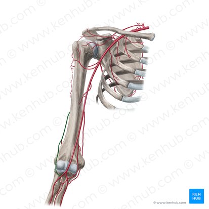 | Vascularização | Artéria braquial profunda, artéria radial, artéria interóssea comum |