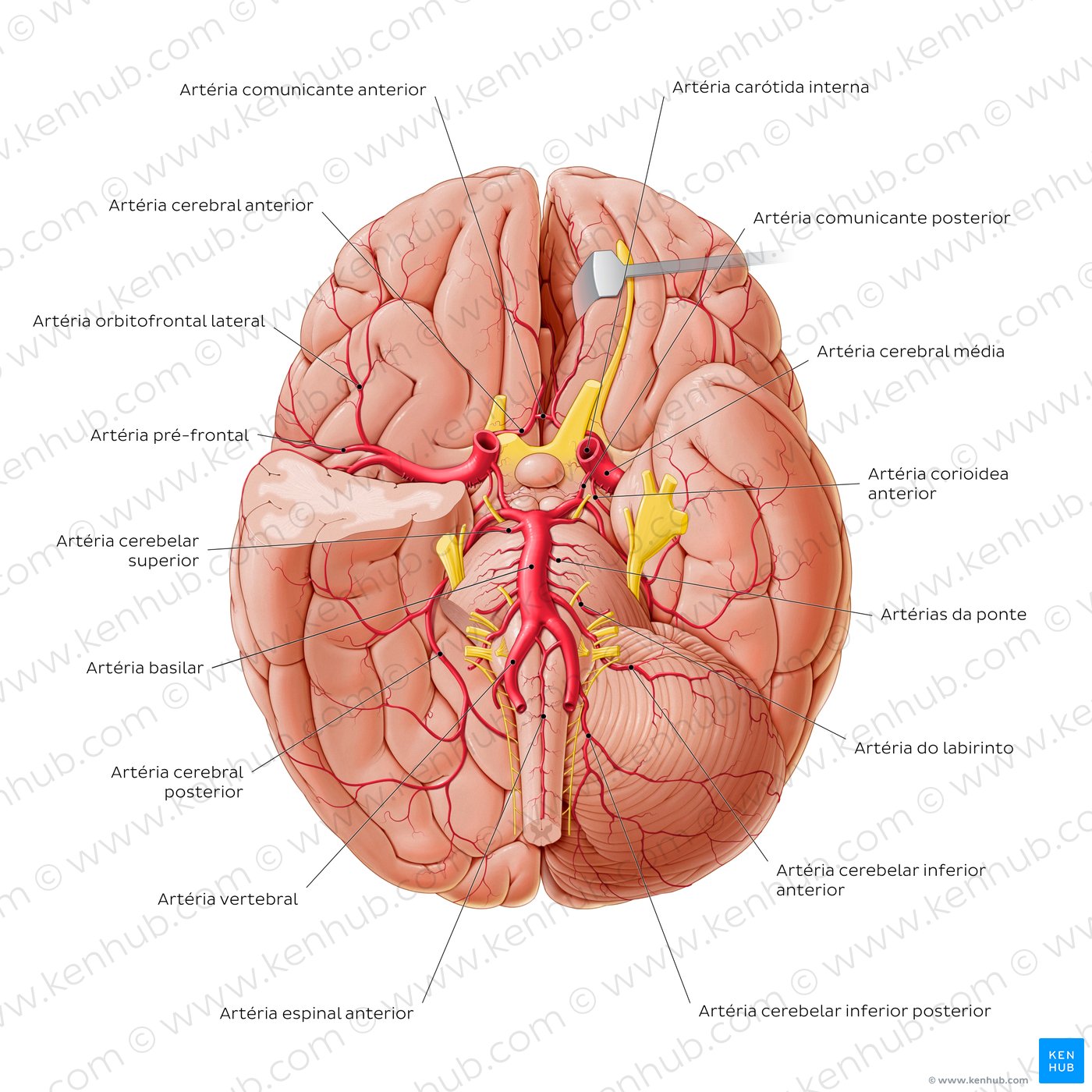 | Polígono de Willis | De anterior para posterior: Artéria comunicante anterior (da artéria cerebral anterior) Artérias cerebrais anteriores (da artéria carótida interna) Artérias carótidas internas (da artéria carótida comum) Artérias comunicantes posteriores (da artéria cerebral posterior) Artérias cerebrais posteriores (ramos da artéria basilar) |
