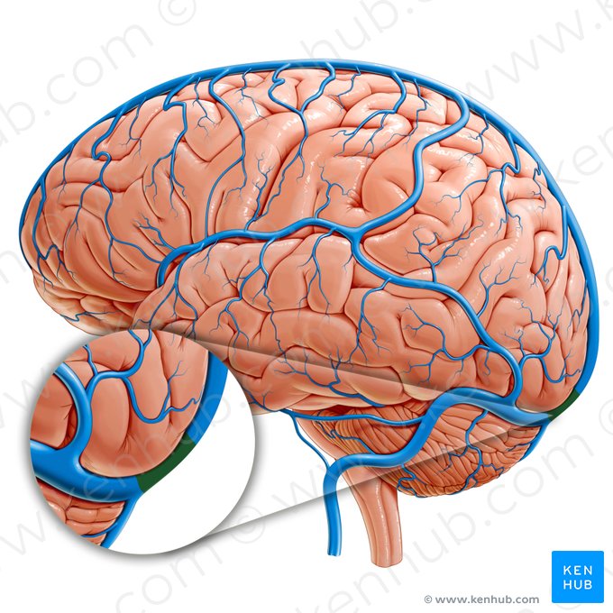Explore as veias do encéfalo com as galerias abaixo das vistas lateral, medial e inferior.